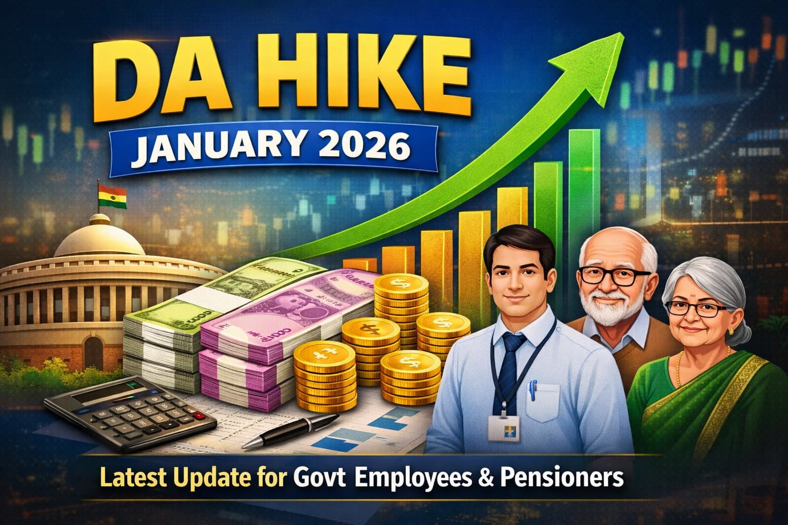 नए साल की शुरुआत हमेशा नई उम्मीदें लेकर आती है, और जब बात केंद्रीय सरकारी कर्मचारियों और पेंशनभोगियों की हो, तो साल 2026 किसी ऐतिहासिक मोड़ से कम नहीं लग रहा है। जनवरी 2026 में होने वाली संभावित DA बढ़ोतरी को लेकर चर्चाएं तेज़ हैं और लाखों कर्मचारियों व पेंशनर्स को इससे राहत मिलने की उम्मीद है। DA Hike January 2026 के लिए फिलहाल अनुमान है कि केंद्र सरकार के कर्मचारियों और पेंशनर्स का महंगाई भत्ता लगभग 2 प्रतिशत अंक बढ़कर 58 प्रतिशत से करीब 60 प्रतिशत तक जा सकता है, लेकिन सरकार की आधिकारिक अधिसूचना अभी आनी बाकी है।